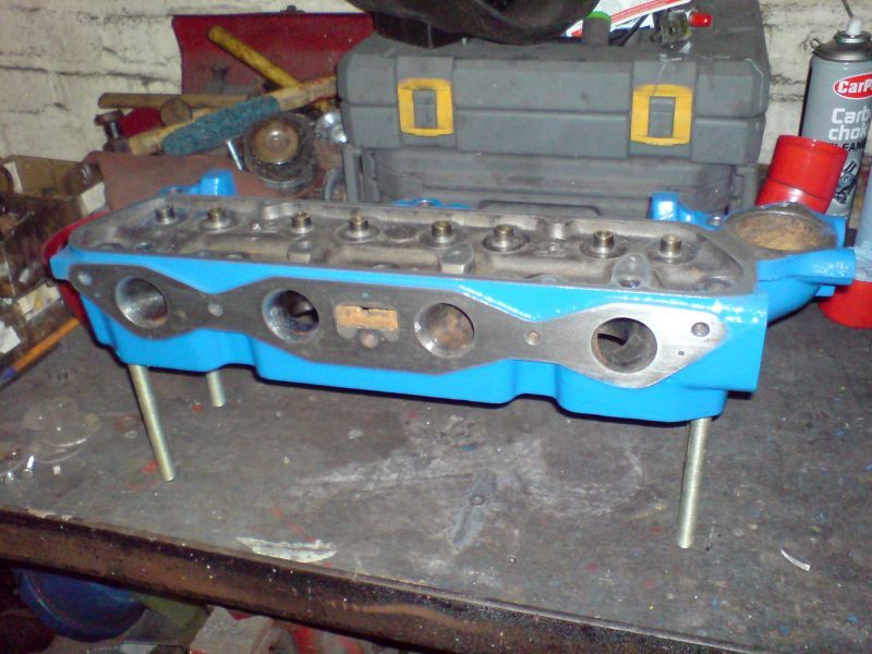 This is probably the best bargain I've bought off eBay for years - a very nicely ported big valve crossflow head. In this picture I've stripped the head, thoroughly cleaned it and painted it with engine enamel.